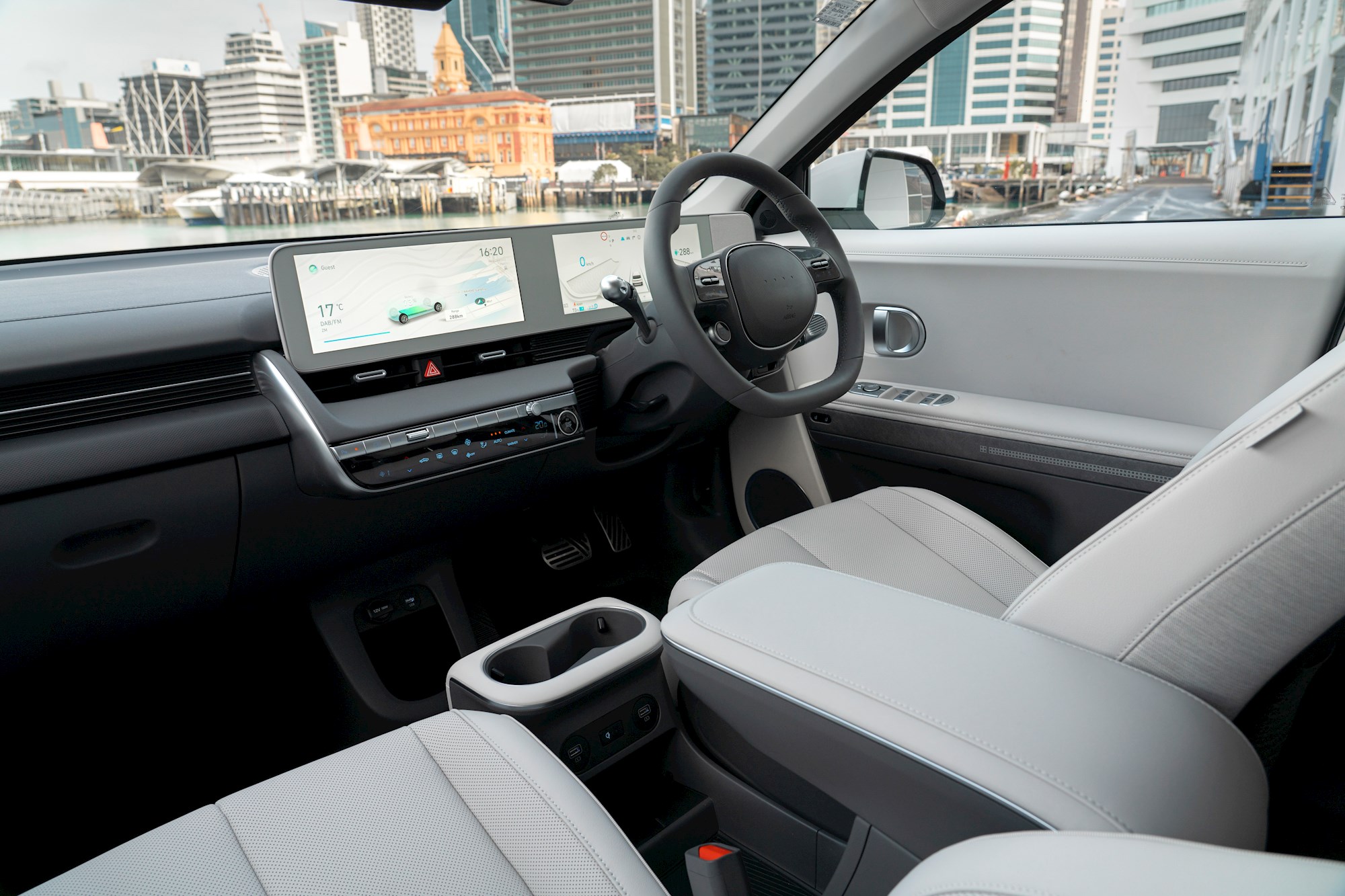 Today, many of the new Ioniq 5 interior touchpoints — seats, headliner, door trim, floor and armrest — use eco-friendly, sustainably sourced materials, such as recycled PET bottles, plant-based (bio