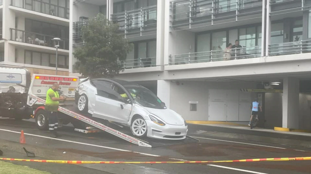 Luckily, no one was seriously injured in the crash, with the driver of the Tesla questioned by police.