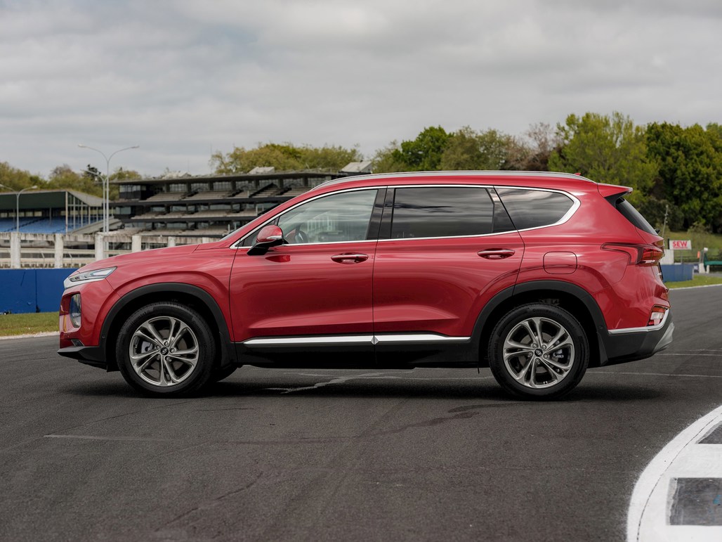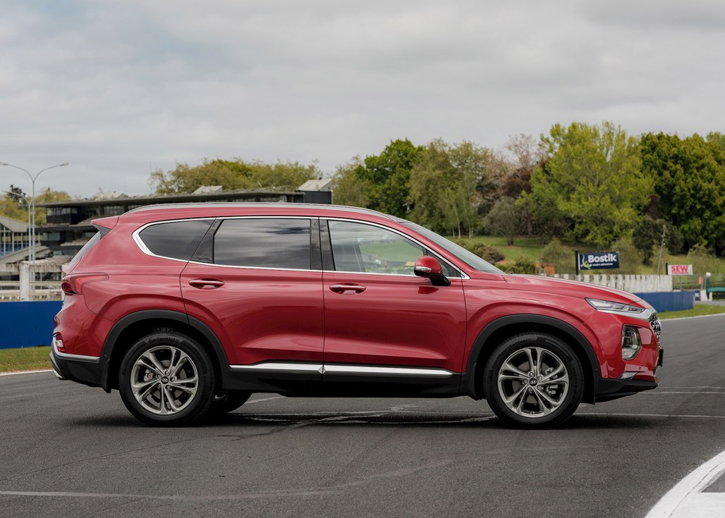 The Santa Fe starts at $59,990, and entry-grade equipment includes 18-inch alloy wheels, rear view camera, front and rear parking assist, HTRAC, cloth upholstery, daytime running lights, a 7-inch touch screen, tyre pressure monitoring and blind spot monitoring, front and rear collision avoidance assist, lane keeping assist, and radar-guided cruise control.