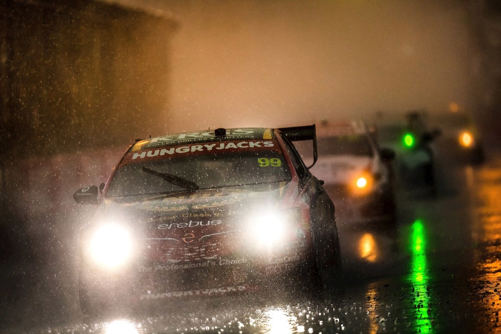 What was originally a 102-lap race was run in overcast-but largely dry conditions until lap 29, when the heavens opened.