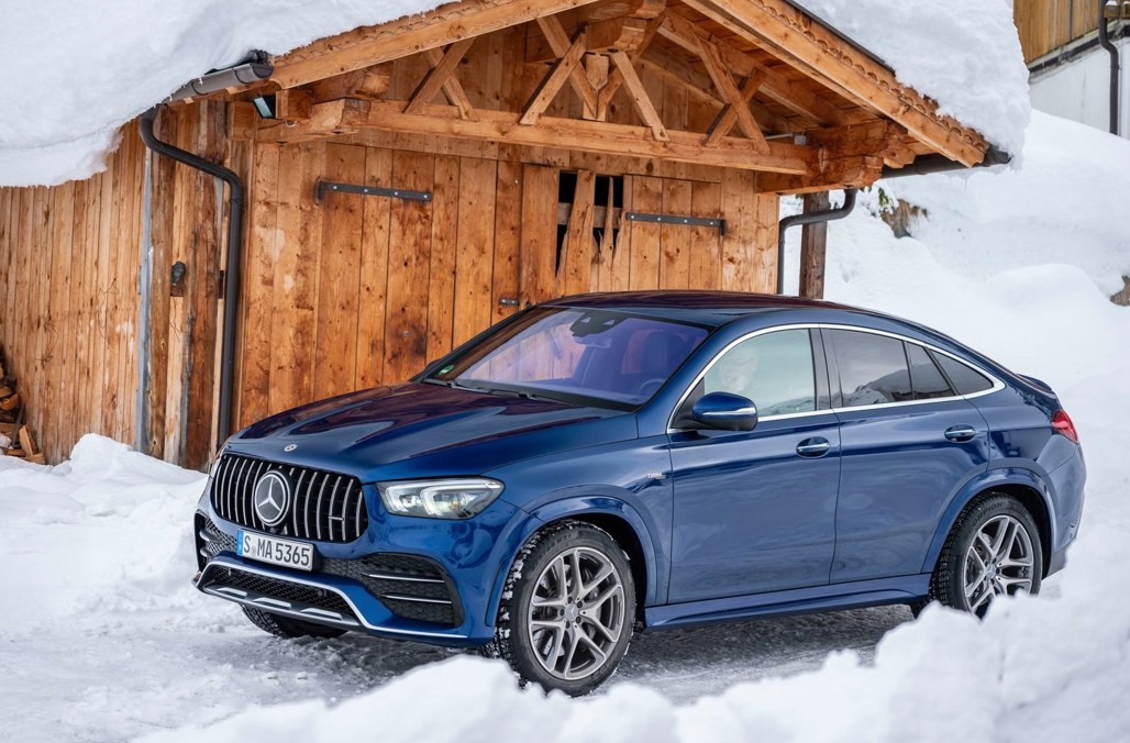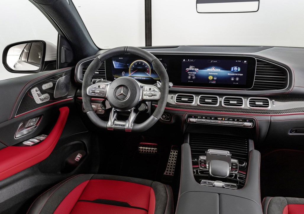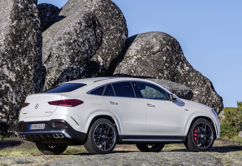 Between the engine and transmission is an integrated starter-alternator, a compact 48V component that can briefly add a 16kW power boost, making the GLE53 Coupe a hybrid. It also delivers smooth and lightning-fast idle-stop restarts and, in alternator mode, powers the 48V electrics.