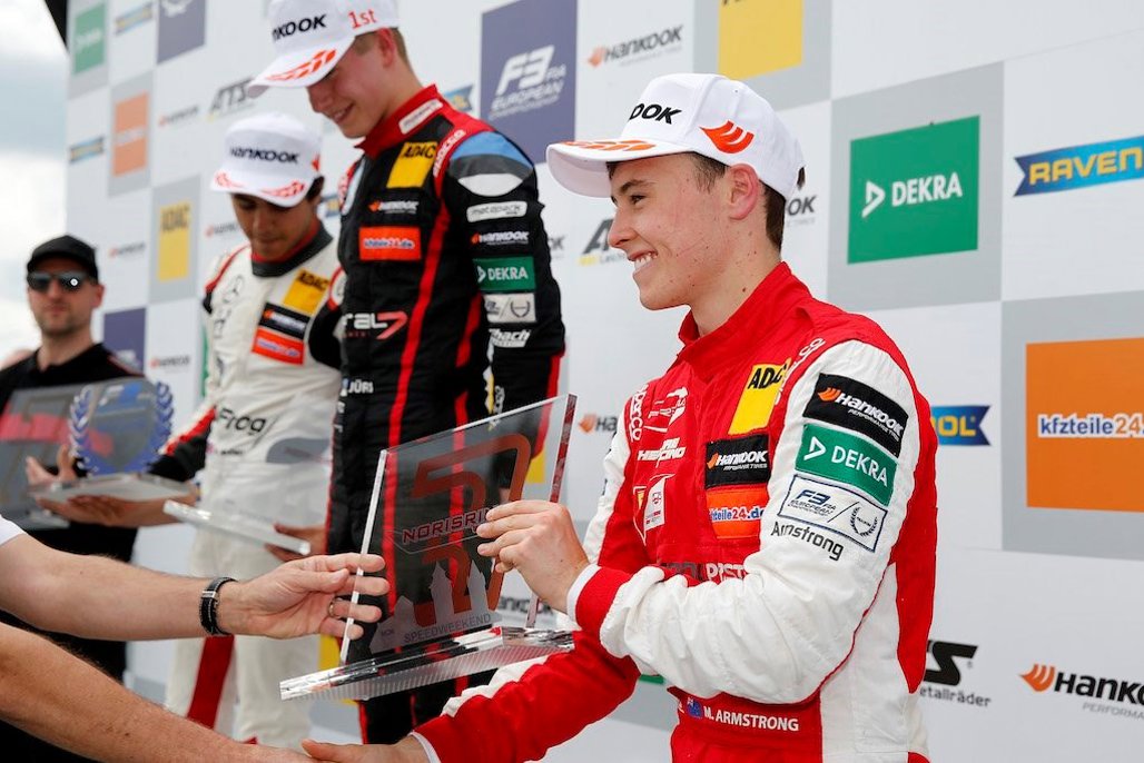 Seven rounds of the European Formula 3 Series remain, where Armstrong will hope to retain the top spot.