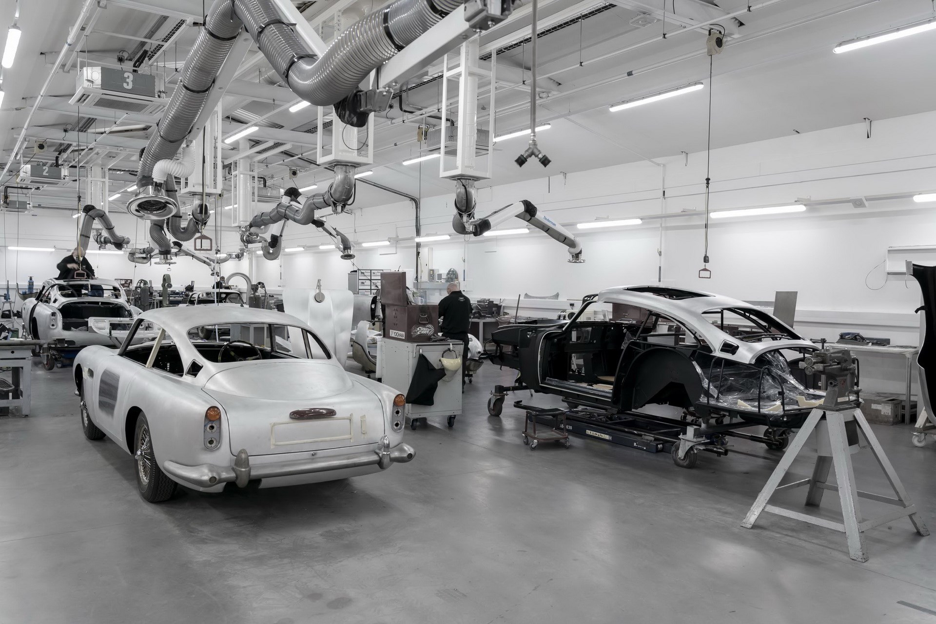 Aston Martin is using old world techniques to build the DB5s but is also applying modern engineering and performance measures. Aston Martin says the process takes about 4500 hours per car.
