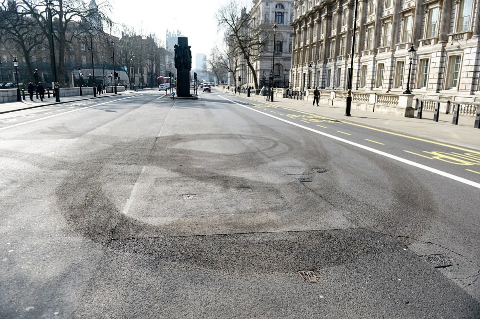 As well as screeching past the Cenotaph the stunt driver left tyre marks surrounding Whitehall's women's memorial, which marks the efforts made by women in the Second World War.