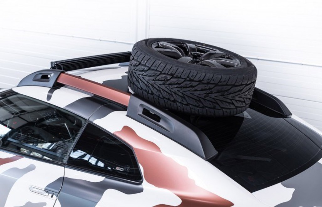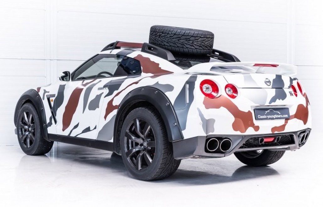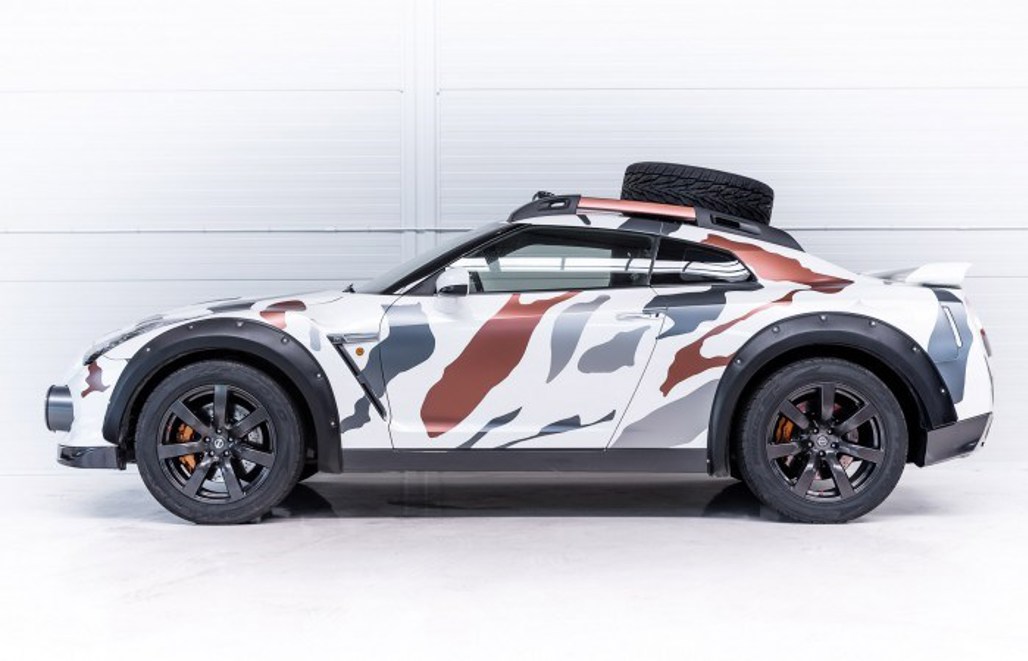 Speaking of these modifications, it starts with a set of off-road dampers that lifts the GT-R 120mm above standard height. Next, a set of fender flares were added, along with a set of all-terrain tyres.
