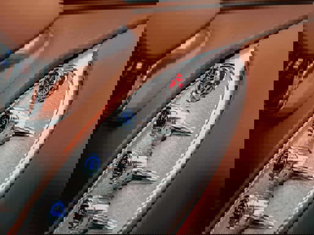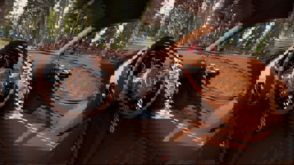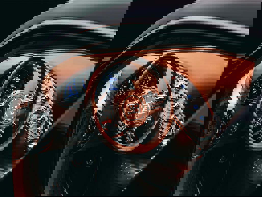 The standout party trick is an Audemars Piguet Royal Oak Tourbillon (41mm) integrated into the dash at the owner’s request. Bugatti says the watch uses a self-winding system powered by the car, without an electrical connection, via a rotating gondola mechanism.