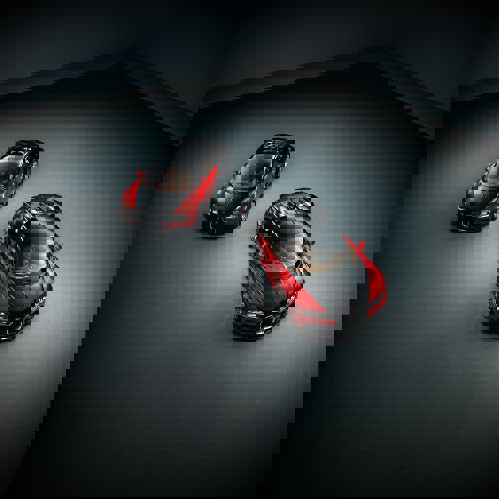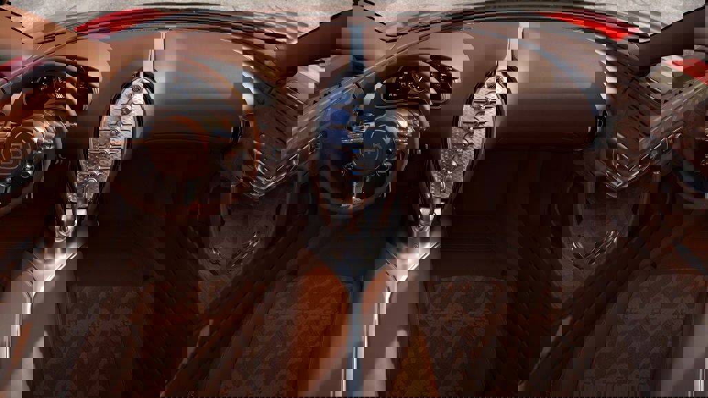 The paint is where the detail obsession really shows. The red finish uses a silver aluminium-based layer beneath a red-tinted clear coat to create depth, while the contrasting carbon fibre isn’t simply painted black, as Bugatti specifies 10% black pigment mixed into the clear coat for a darker, richer look.