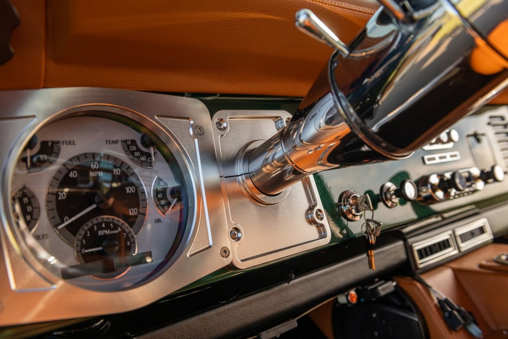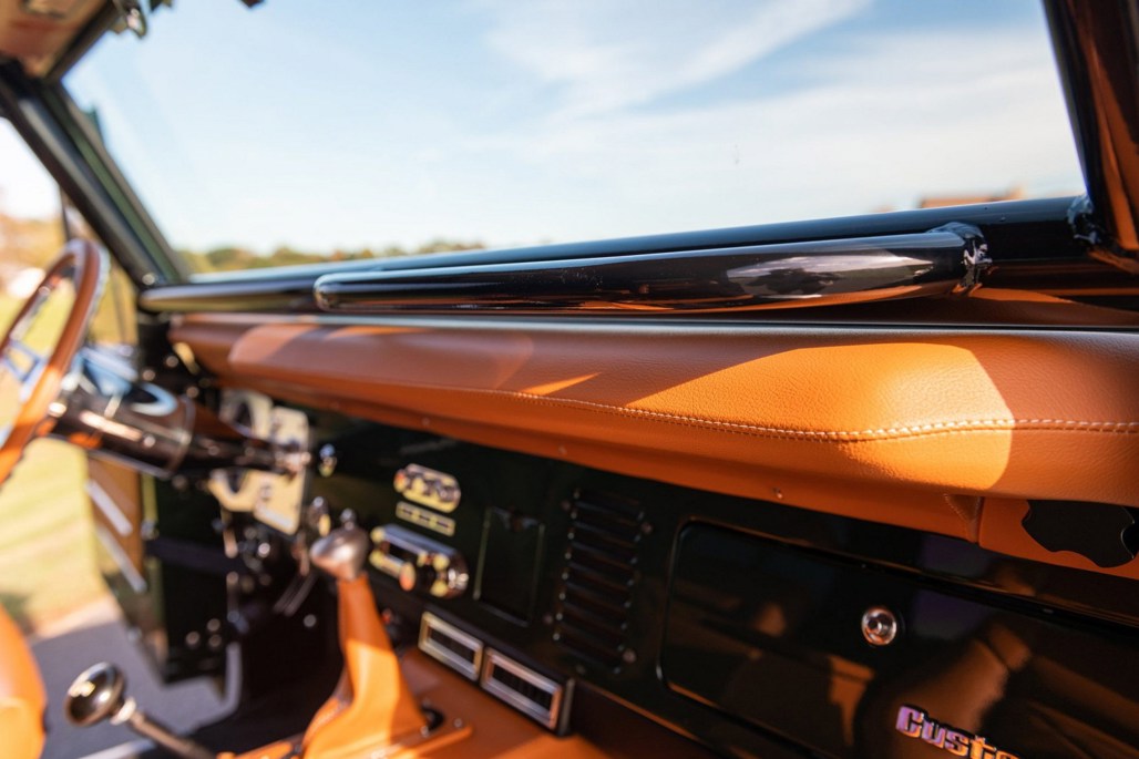 The SUV also includes a range of modern amenities, like a Vintage Air climate control system, a RetroSound stereo with Bluetooth, a new speaker system, and a new gauge cluster and steering wheel.
