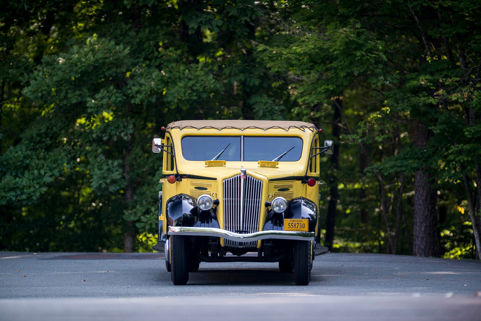 This bus was used for around 30 years years by the famed Yellowstone Park for various applications, including as a tour bus. This latter detail is illustrated by the removable canvas roof. It was in service at Yellowstone until the mid-'60s when it was retired.