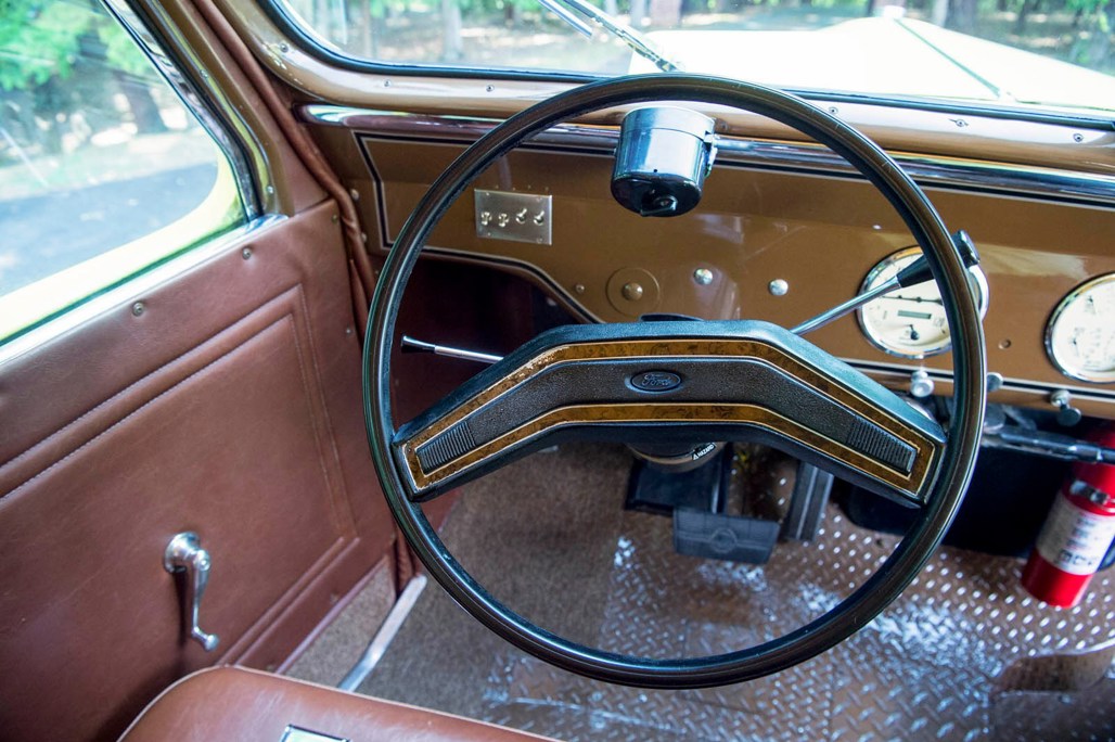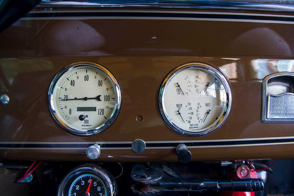 “The bus offered here has been subtly modified for more user-friendly, reliable road use, including the installation of a 300-cubic inch Ford inline six-cylinder engine and automatic transmission, as well as power steering, a 1995 Ford F450 master cylinder with power brake booster, 12-volt electrical system, an electric fuel pump, and Autometer instruments,” say RM Sotheby's.