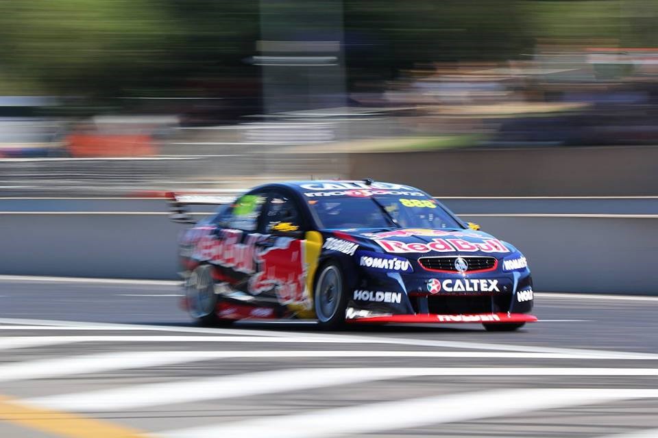 In the opening race it didn’t take long for drama to unfold as third and fourth place starters Fabian Coulthard and Jamie Whincup came to blows. Appearing to get too deep under brakes, Whincup clipped the rear of Coulthard’s Commodore sending the pair off the track, Coulthard subsequently retiring
