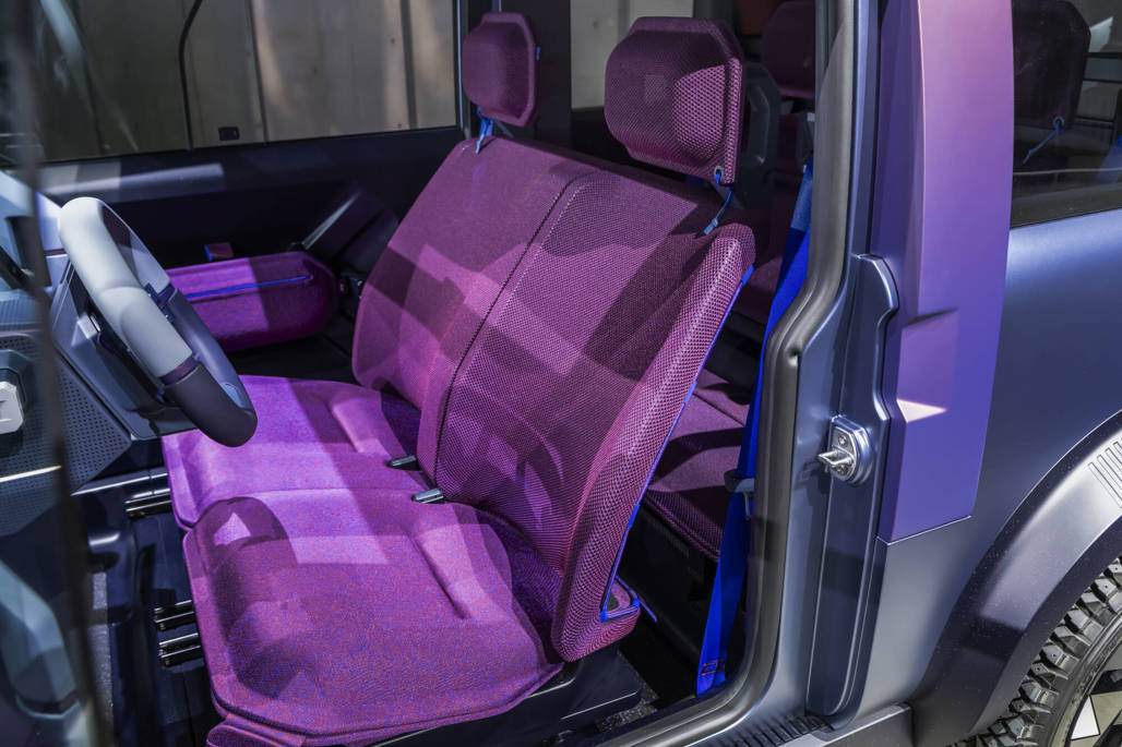 The cabin follows suit, with bench-style front seats, sliding windows, and a cubic layout that feels larger than its footprint.