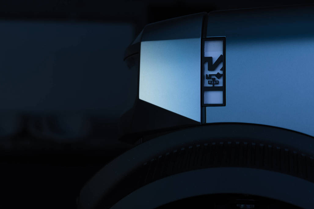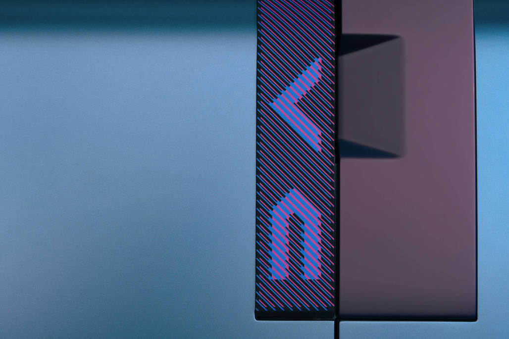 The exterior is pure function: no overhangs, a horizontal nose with slim headlights and rear doors opened by simple straps instead of handles.