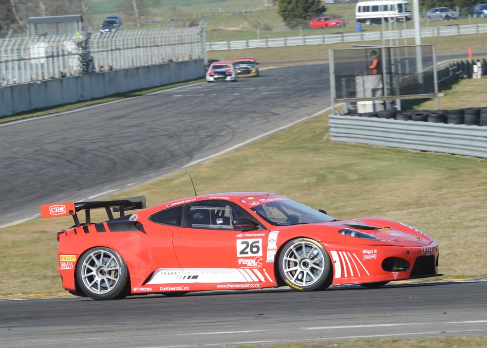 The Trass Family Motorsport Ferrari 430 GT3 had qualified second fastest and Jono Lester took the race lead at the end of an opening lap which had seen the grid order mixed up by a Le Mans start format.