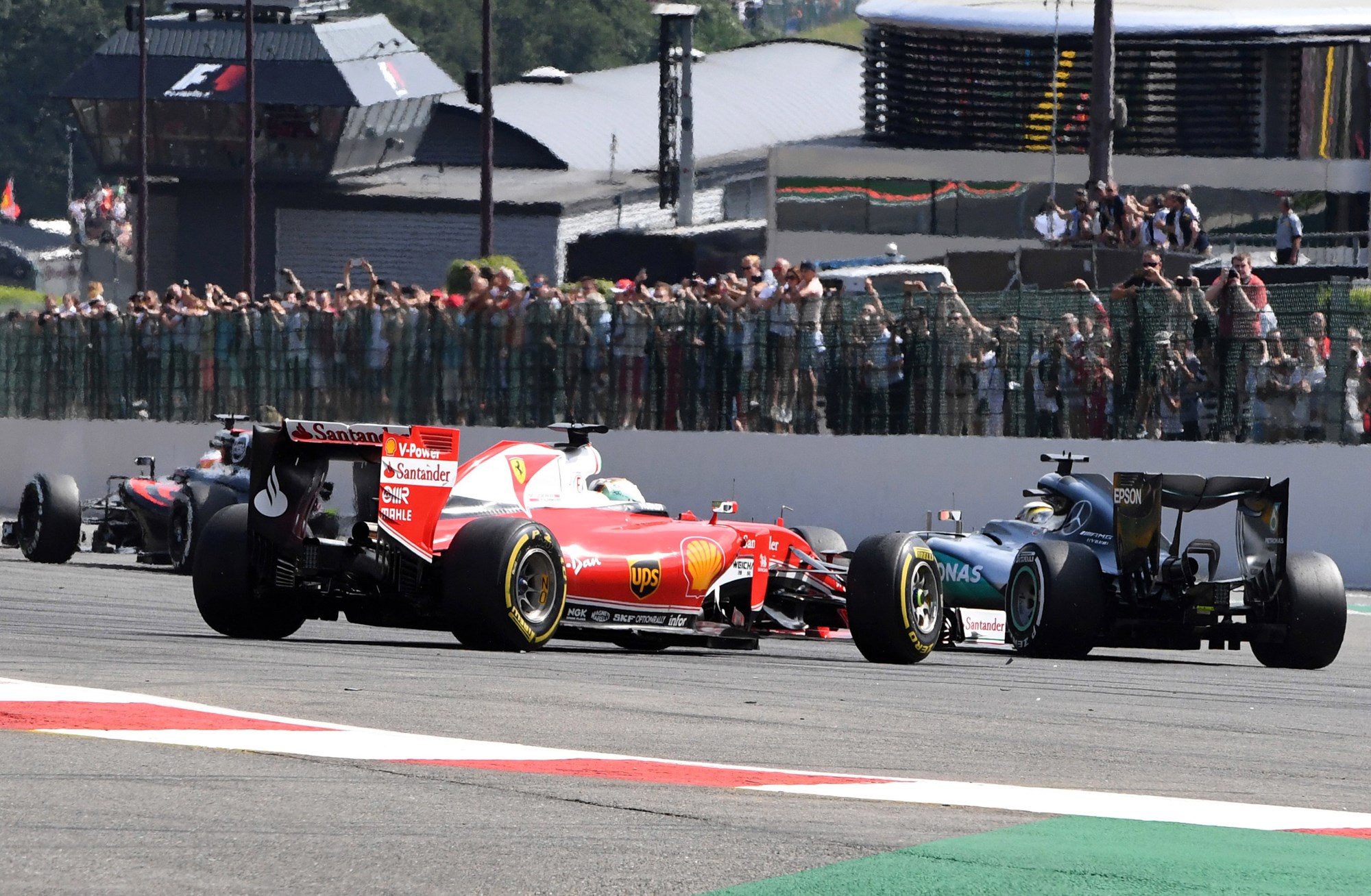 The Ferraris were pushed wide and, as a consequence, Raikkonen nudged into the side of Vettel.