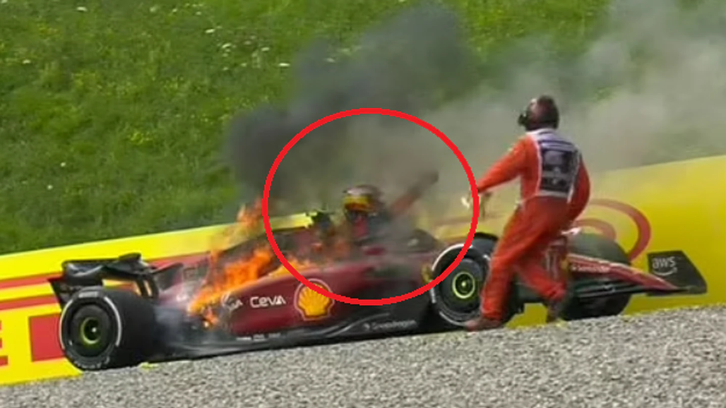 Carlos Sainz scrambled out of his fire-engulfed car which left him "heartbroken" and cost Ferrari another podium place at the Austrian Grand Prix.