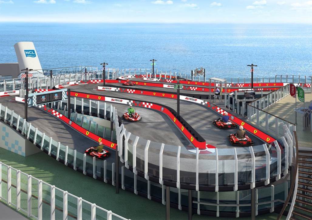 This star feature will be a partnership with Scuderia Ferrari Watches, Norwegian Cruise Line announced today, with distinctive Ferrari branding on the track.