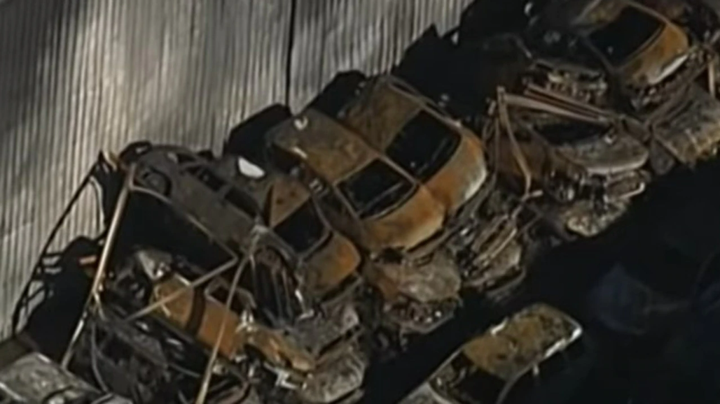 Nearly 50 cars have been charred beyond repair while the external wall of a shed has been damaged.