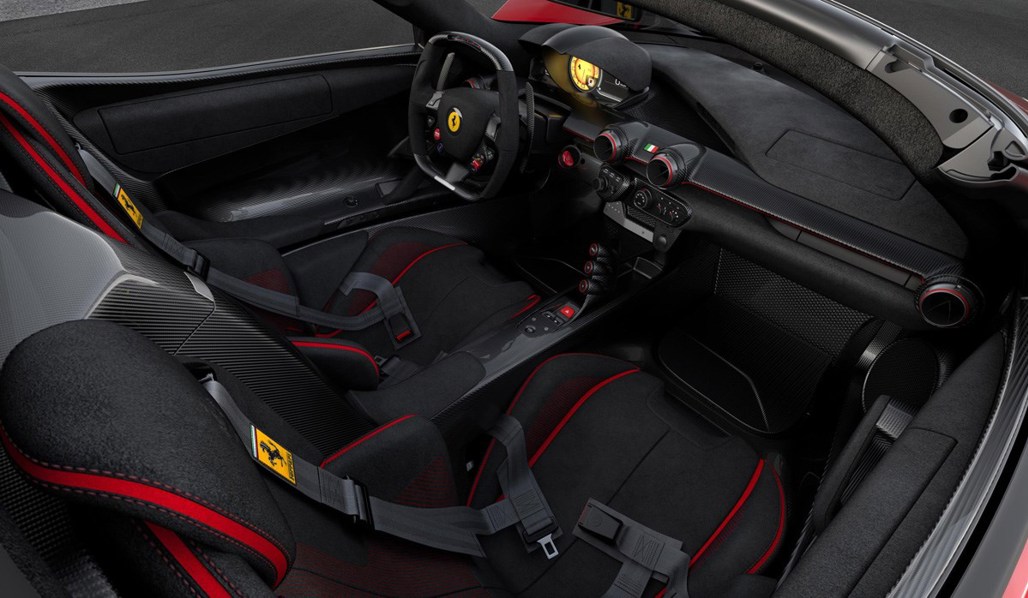 The final LaFerrari Aperta will also sport a special livery, featuring a one-of-a-kind metallic Rosso Fuoco body colour and metallic Bianco Italia double racing stripe on the bonnet and rear.
