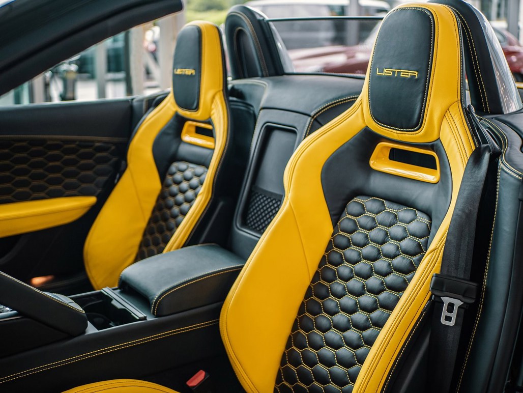 In usual Lister fashion, the interior has been overhauled with their colours, and the seat/door card combination looks incredible. These seats are comprised of hand-stitched Nappa leather, which can be also found on the dash and in the roof lining.