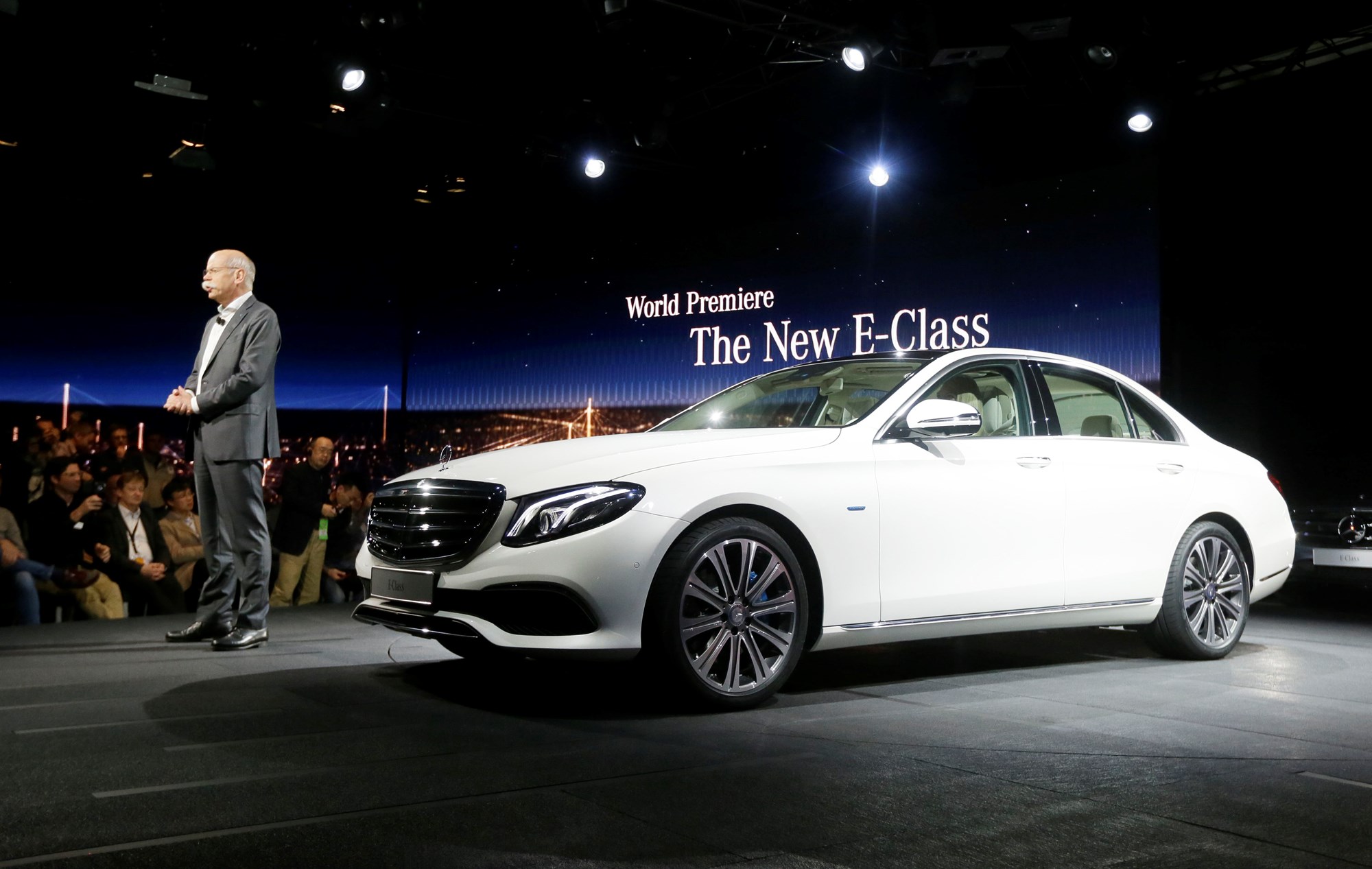 Dr. Dieter Zetsche, chairman of the board of management Daimler AG and Head of Mercedes-Benz Cars, unveils the new E-Class sedan at the Detroit Auto Show. Picture/AP.