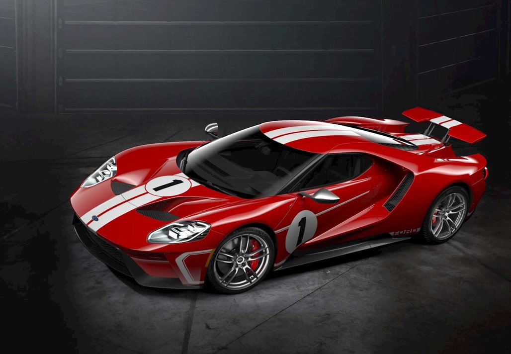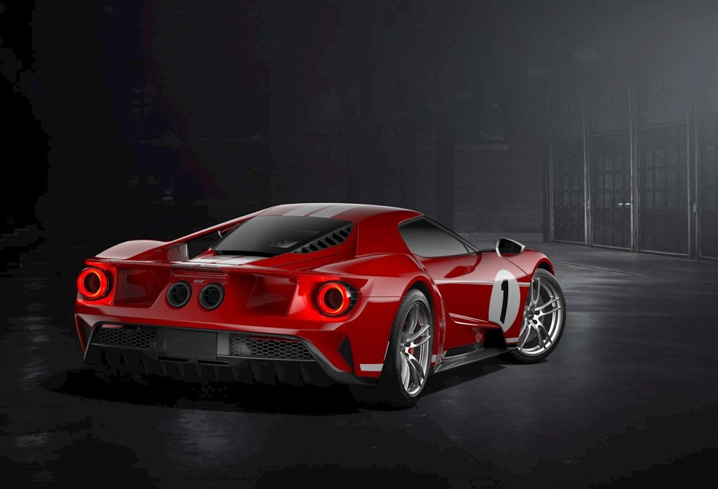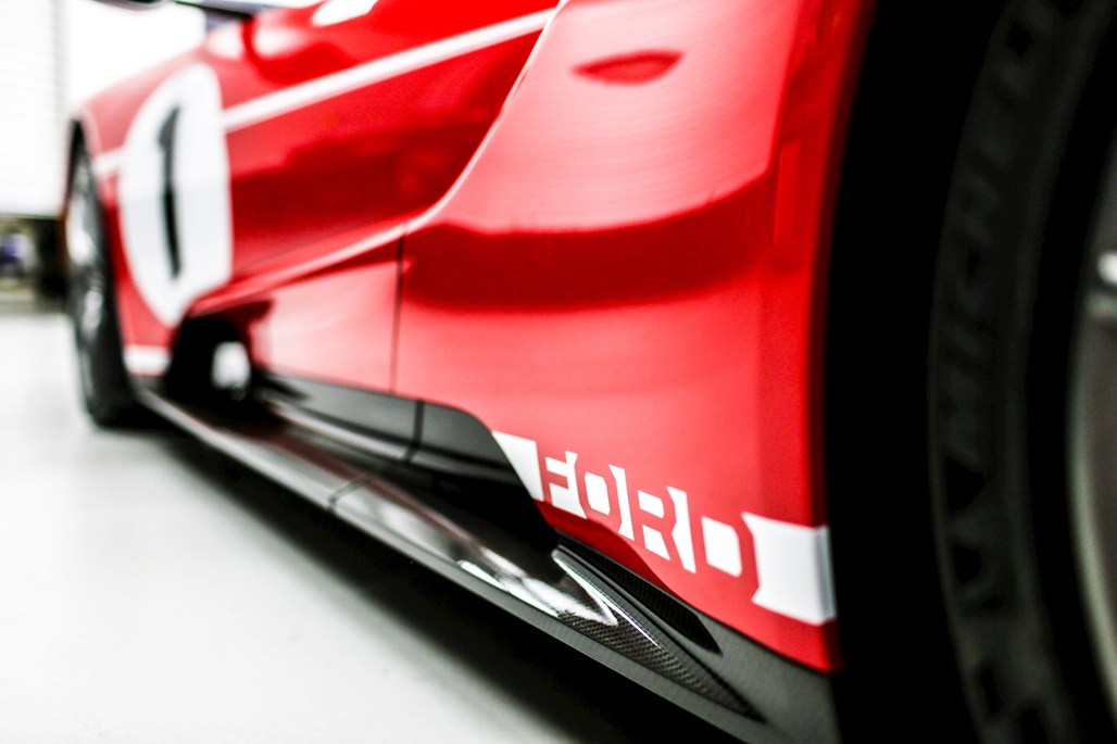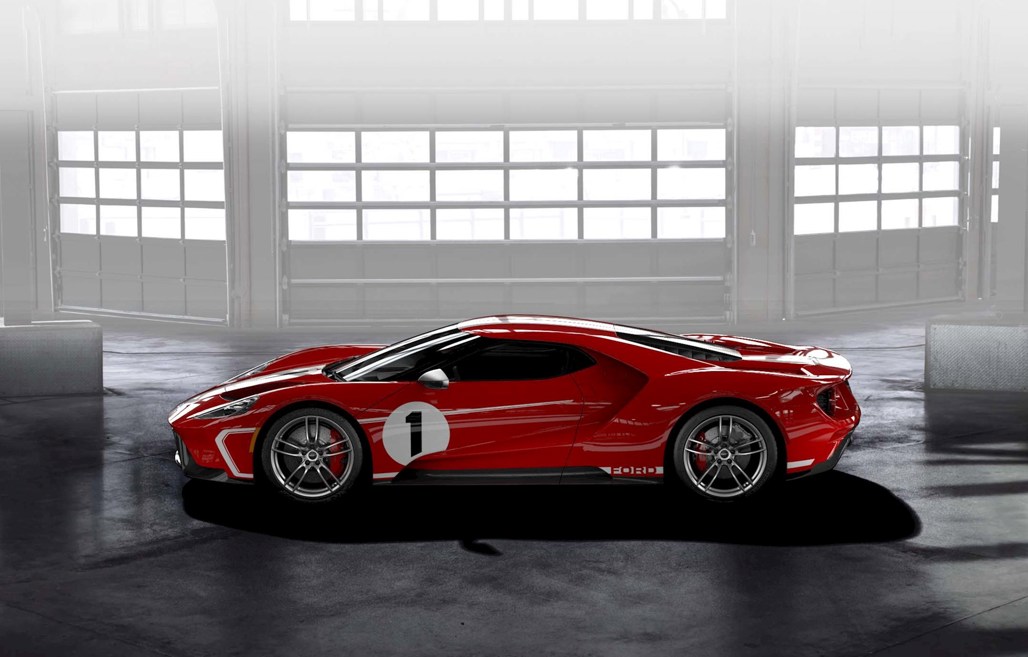 The car honours Ford's victory at the 1967 24 Hours of Le Mans 50 years ago with American fighter pilots Dan Gurney and A.J. Foyt. This means that it sports a Race Red and white striped paint scheme similar to the MkIV GT40 that Gurney and Foyt's raced, as well as carries a number of other changes.