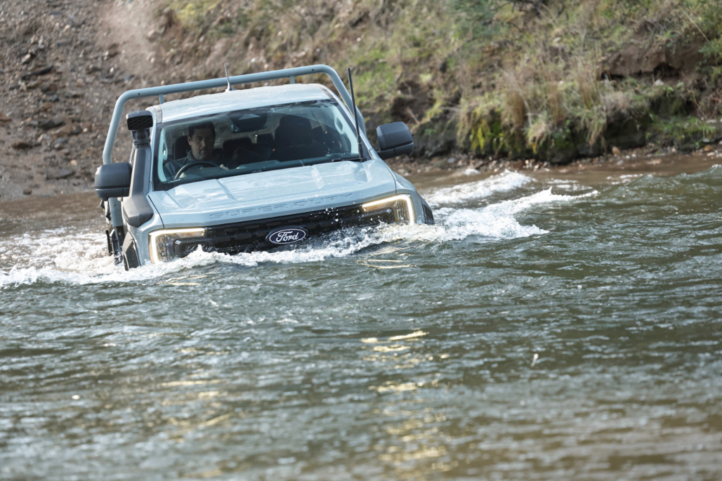 As it crossed each river, the Ranger Super Duty steadily proved its 850mm wading capability, with key system breathers for the transmission, transfer case, differentials, fuel, and AdBlue tanks.