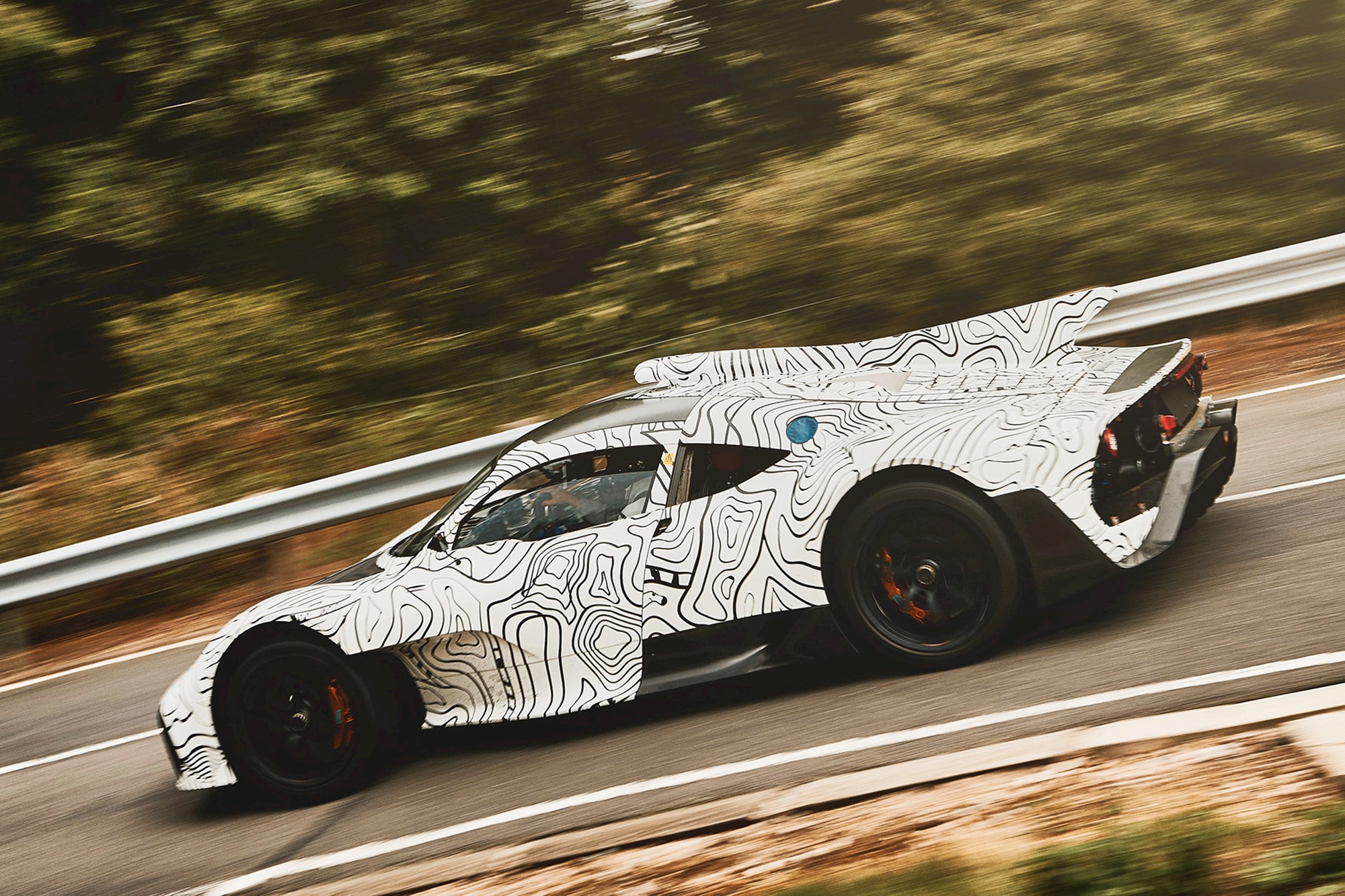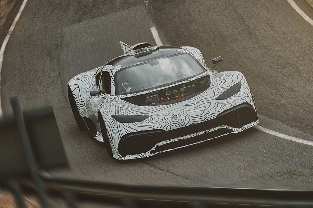 “Successful completion of the dyno tests was followed by the installation of the highly complex powertrain into the first prototypes, which since then have been driving around unnoticed on a secret test ground in England. But today it turns out to be more difficult to keep this testing confidential, [although] the camouflaged prototypes of the Mercedes-AMG hypercar are still being driven on closed test grounds and racetracks.