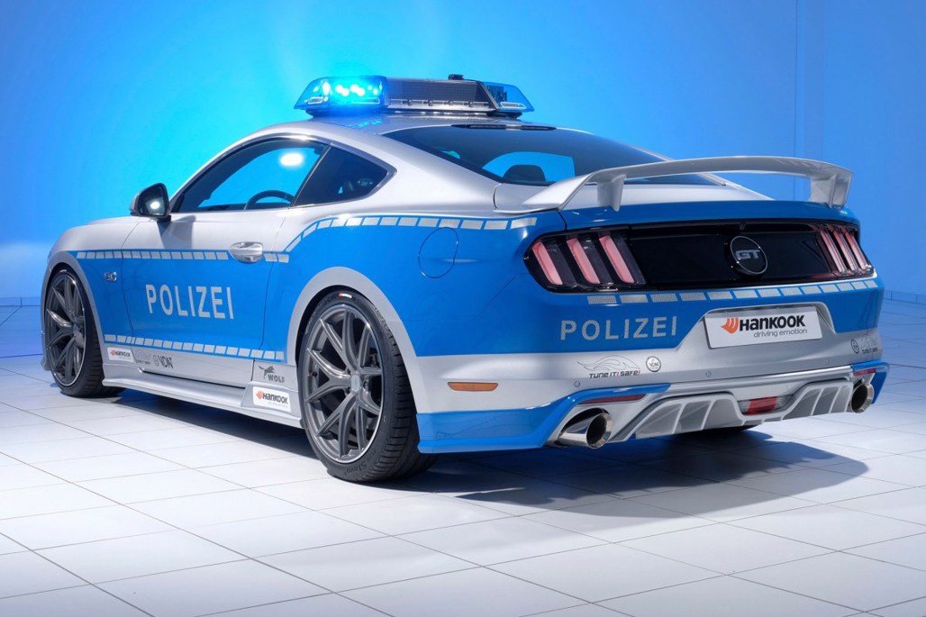 Revealed at the recent Essen Motor Show (think German SEMA), this Ford Mustang dons Germany's own ‘Polizei’ strip and a range of modifications courtesy of Wolf Racing. And it's all for a good cause.