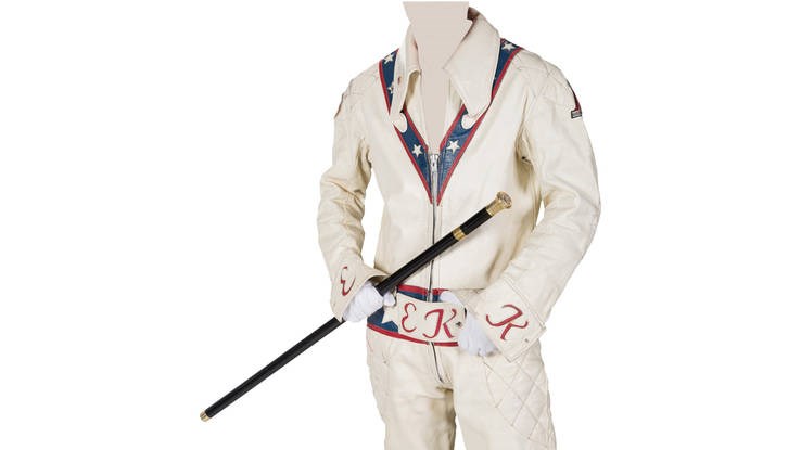 Evel’s son Kelly Knievel has put up some of his dad’s memorabilia through Heritage Auctions, which generally specialises in more conventional sports miscellanea, like baseballs, bats and boxing gloves.