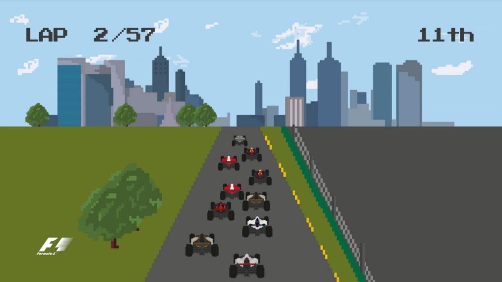 The YouTube vid (search "F1 2016, 8-bit") recreates the highlights and dramas of the past season as if it were a multi-level arcade game in a suburban fish and chip shop, down to the tinny Casiotone-drenched soundtrack.
