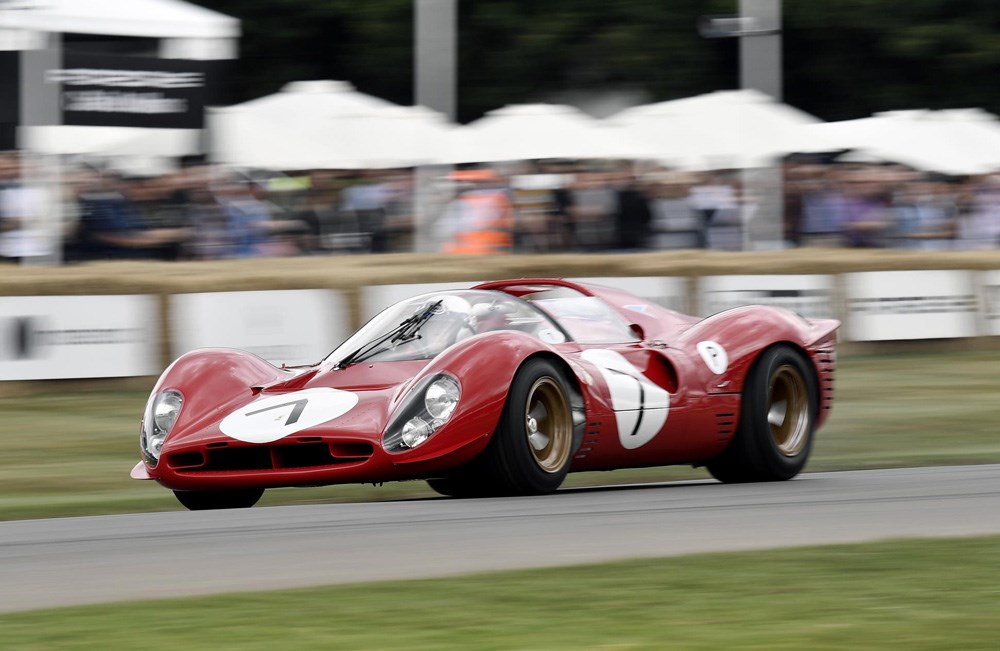 Powered by a 4-litre V12, the 330 is regarded as one of the most beautiful Ferrari's ever made, and this 330 at Goodwood was the very car Amon drove that year to victory at the Daytona 24 Hours and 1000km Monza event.