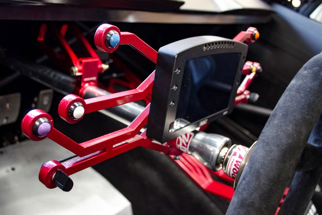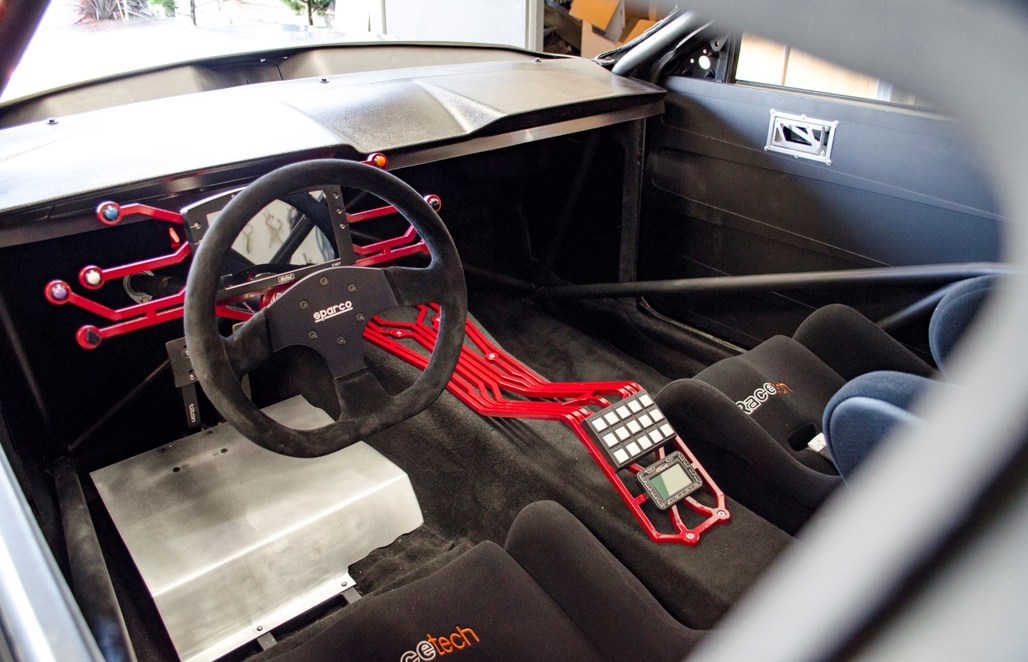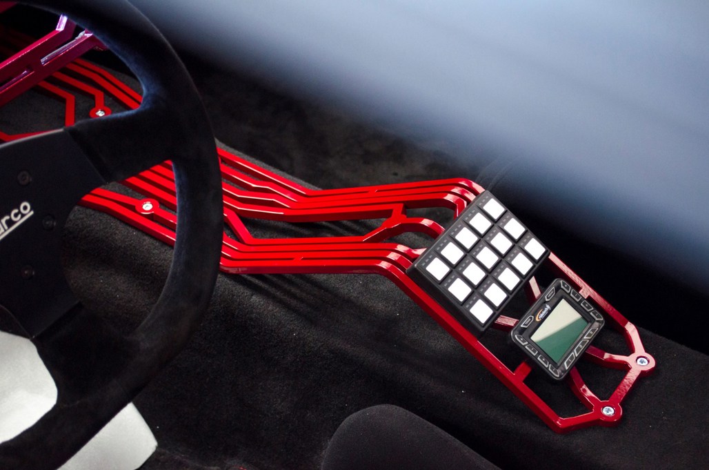 The interior has been transformed into that of a caged and rather angry race-focused road car.