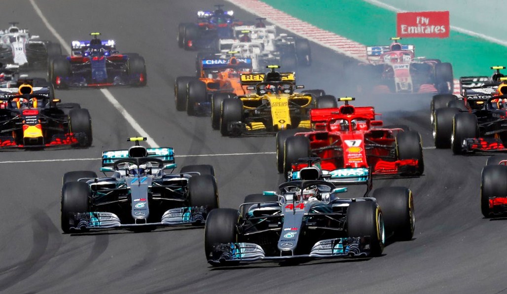 A first lap incident saw three cars retire in a spectacular crash that promoted a safety car. Haas driver Romain Grosjean lost control of his car and spun in front of a chasing pack. Nico Hulkenberg's Renault had nowhere to go while the Toro Rosso of Pierre Gasly was caught up in the incident as well.