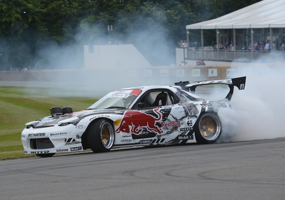 Kiwi drift ace "Mad Mike'' Whiddett putting on a show for the Goodwood fans with his four-rotor Mazda RX7. Picture/Colin Smith.