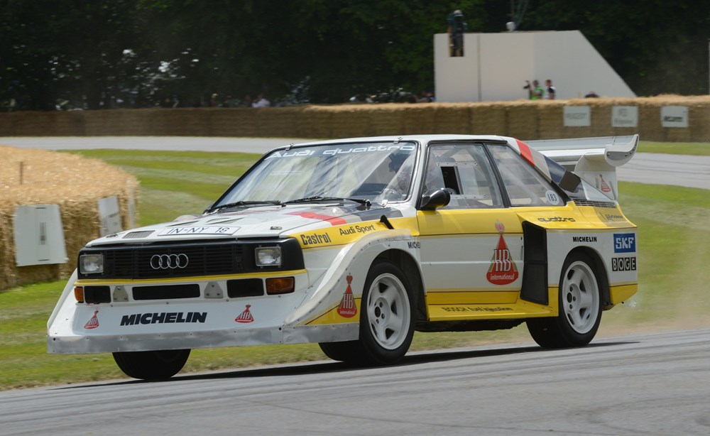 Former world rally champion Hannu Mikkola drives an Audi quattro S1 up the Goodwood course. Picture/Colin Smith