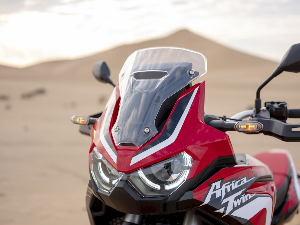 The overall styling of the Africa Twin has also been refreshed with the headlight cowling becoming more distinctive in addition to the new set of twin LED headlights. Perhaps most strikingly, in addition to the sharp angles of the new bodywork, the windscreen has become smaller on the base CRF1100L, which visually widens the gap between the stronger off-road focus of the base bike against the touring focus of the Adventure Sports variant.