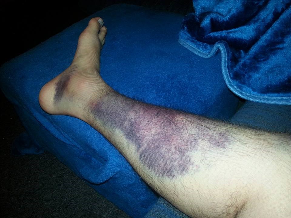 As for me, the doc said I was lucky to get away with no broken bones and only “soft tissue damage” which is doctor speak for major bruising and swelling.