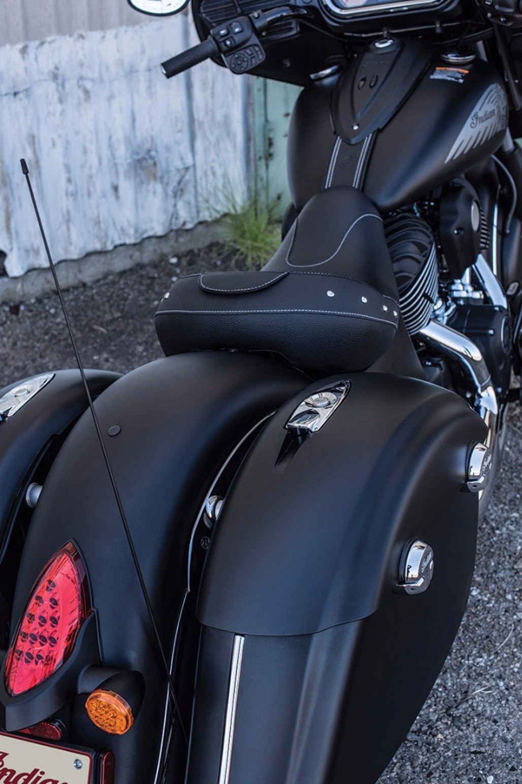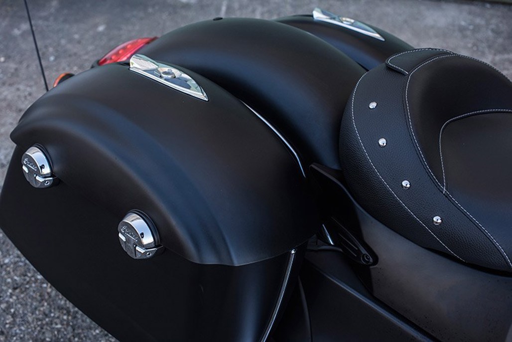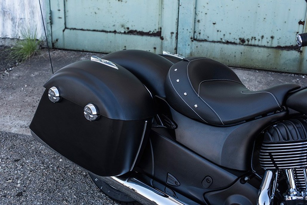 Naturally like all good custom manufacturers, Indian also offers a large selection of authentic factory accessories to further individualise the Chieftain Dark Horse, including new Blackout series accessory air cleaners, performance cams and slip-on exhausts, as well as pumping up the stereo with 100-watt saddlebag lid speakers.