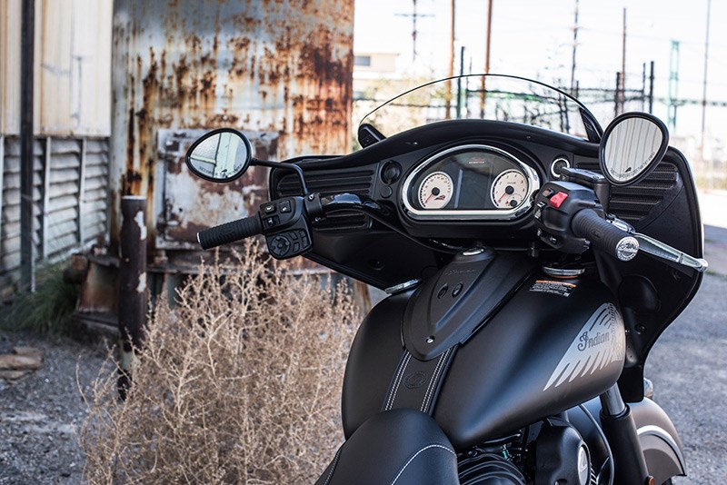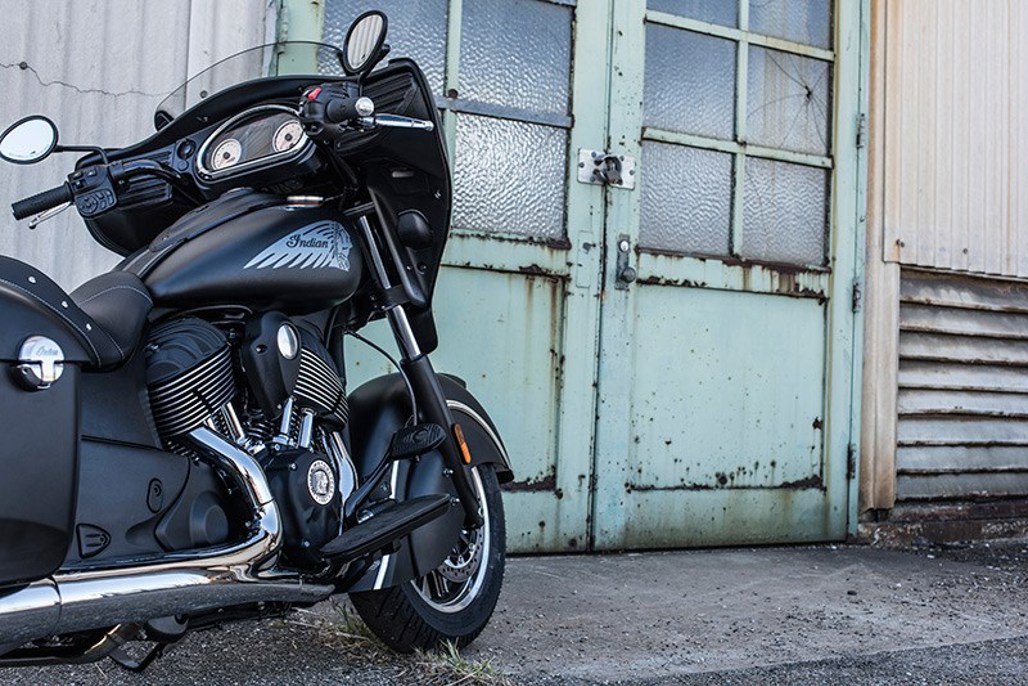 Indian calls the Chieftain Dark Horse "A bagger with undeniable presence, that offers a tonne of matte black, a flicker of chrome, and a wealth of features to roll as one of the most bad-ass American-made V-Twin bikes on the market."