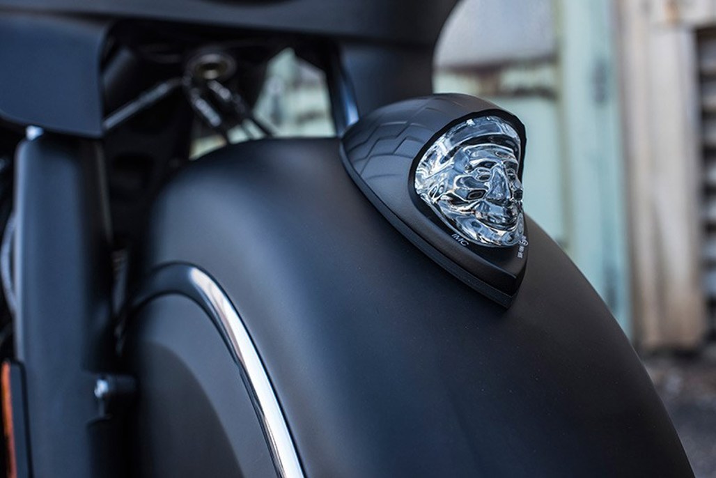 To amplify the Dark Horse family attributes, not only are the fenders, fairing, fuel tank and bags blacked out, the iconic Indian Motorcycle headdress, forks, mirrors, handlebars and switch cubes, turn signals, tank console, engine and airbox cover, lower controls, floorboards and taillight housing are also blacked out.