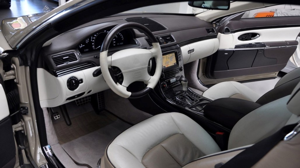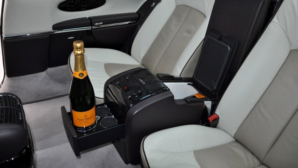 On the inside, this Maybach looks exactly how you'd imagine a dictator's car to look. It's got a questionable two-tone interior, there's a fridge between the two rear seats, and a "porcelain" headliner.