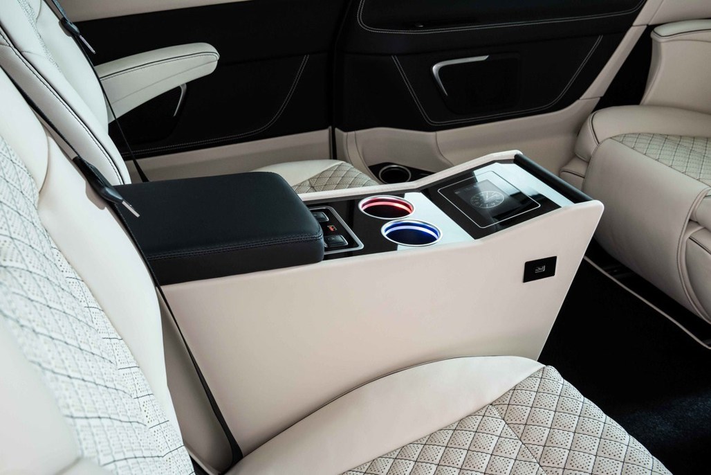 The rear-facing seats have a centre console that can access the 21-inch TV between the two rear seats, while said rear seats have a tablet each to entertain.