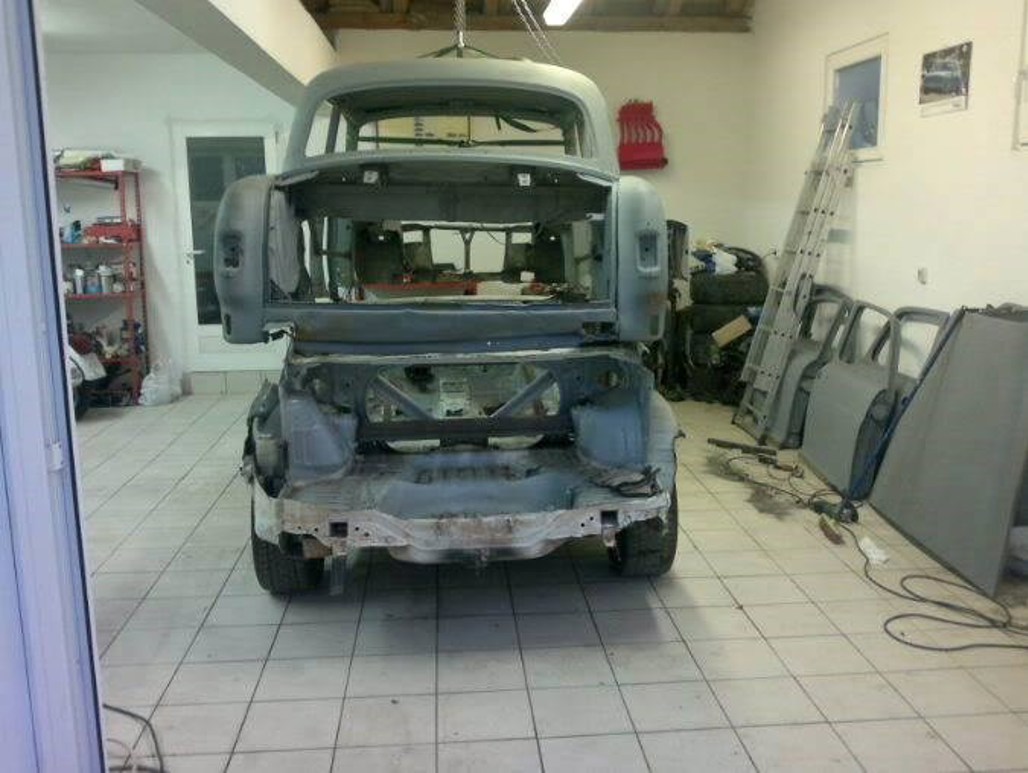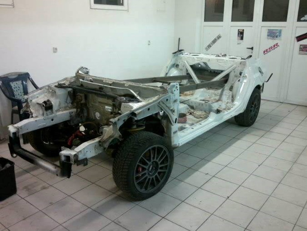 Once the body was ready, they stripped the Mitsubishi down to its bare chassis in order to fit the body. This is a perfect example of when the old measure twice, cut once rule comes in handy.
