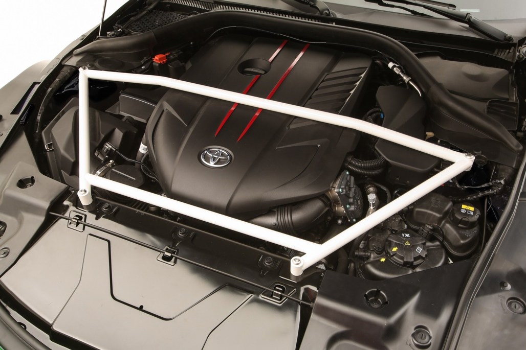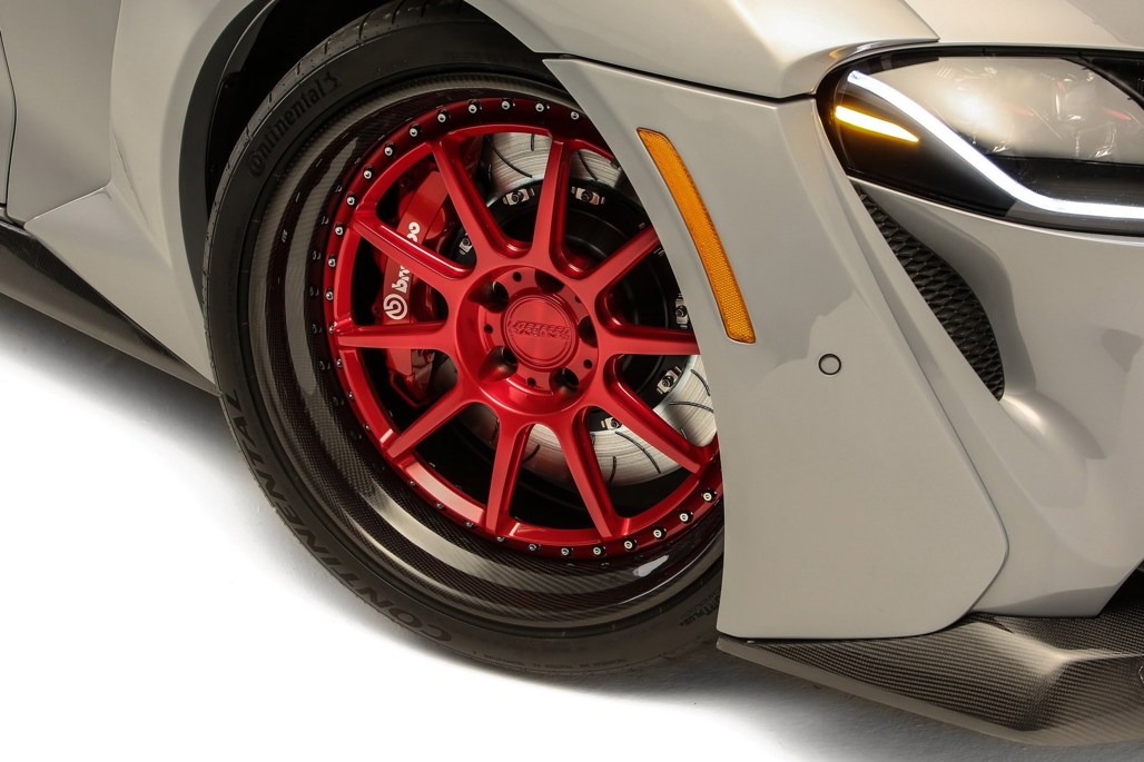 Toyota and the team at Precision Turbo and Engine claim that the Heritage Edition's tweaked 3.0-litre B58 engine now makes over 500hp (372kW — an increase of at least 122kW over stock figures) with the aid of a custom air intake, more commodious exhaust system, and a Mission Performance ECU. The suspension system has naturally been updated too, with an exposed external damper system lobbed in the boot for good measure.
