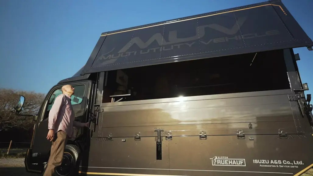 Isuzu has taken its workhorse Elf (known locally under the N-Series badge) and transformed it into something far less industrial: a mobile lounge complete with wooden flooring, shelving and an actual couch.