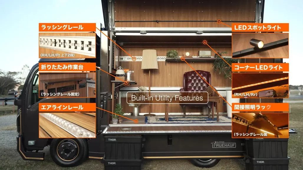 If a couch isn’t enough, Isuzu also presented the Be-Cam GeoRoam, a far more ambitious camper conversion developed with Nippon Tokushu Body.