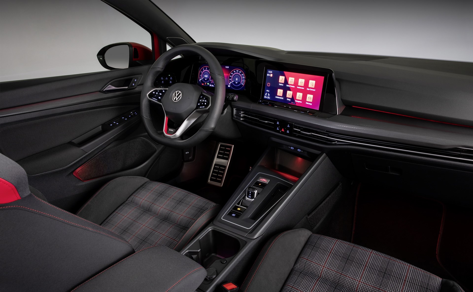 GTI fans will be happy to see that the iconic tartan interior has returned on the Mk8's sports seats, and the manual-equipped model retains the classic golf ball shifter knob.