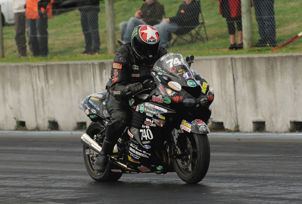 Multi-time national drag racing champion Alan Thoresen (Hamilton) is one of the most experienced land speed racers competing at Goudies Rd. He has achieved 198.702mph (319.8km/h) on his nitrous-injected Kawasaki ZX14 at the Bonneville Salt Flats and is aiming for a 200mph certificate this weekend.