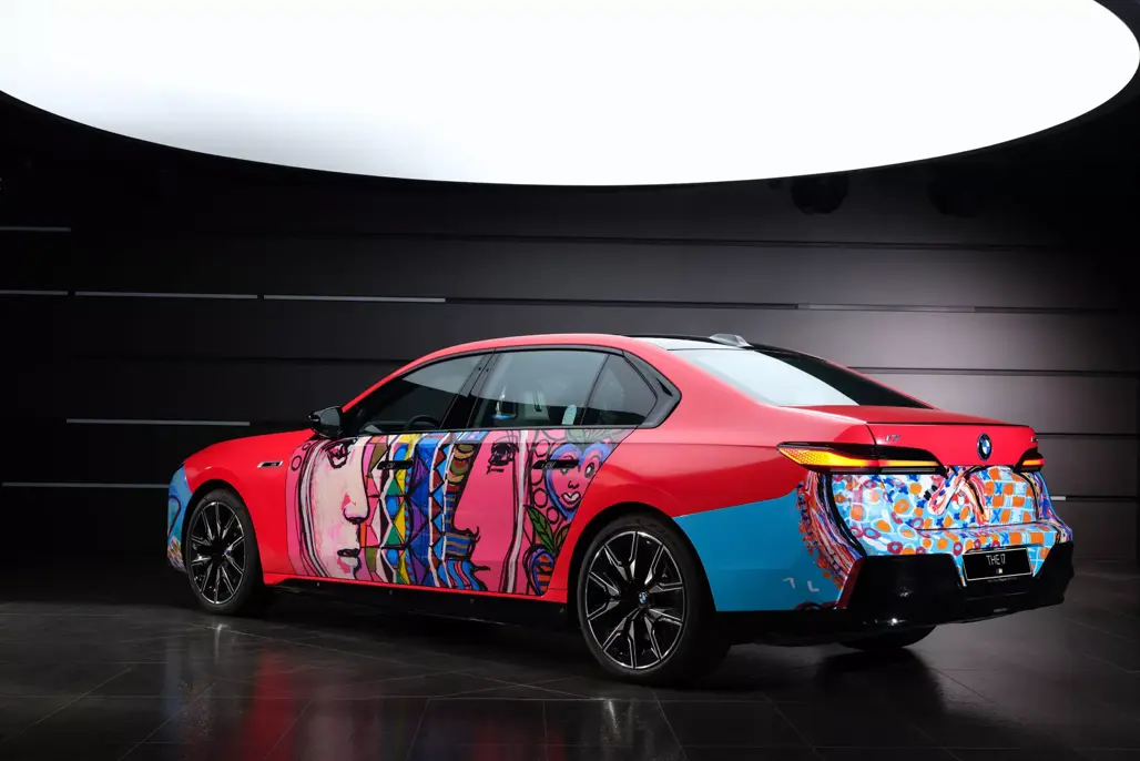 - Korean avant-garde artist Lee Kun-Yong created a one-off BMW i7 Art Car using vivid red and abstract motifs.